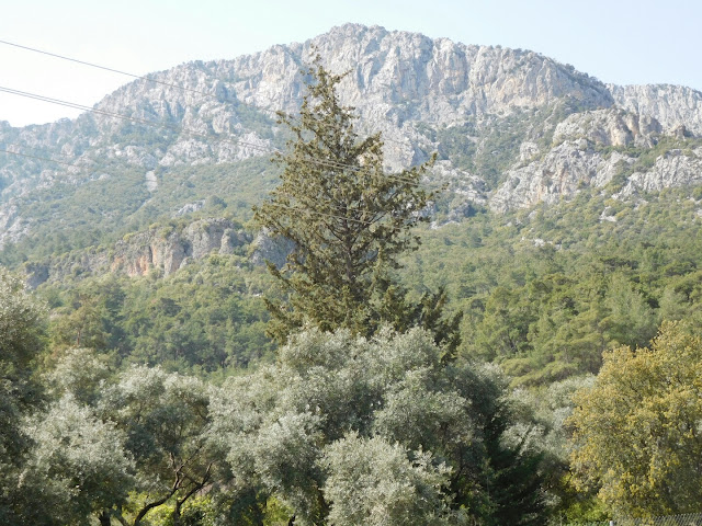 Omdat we weer langs het restaurantje van vorige week kwamen besloten we om hier weer zo'n lekkere kebab als de vorige keer te nemen maar helaas was er nu een andere menu (ik veronderstel dat het een soort chauffeurs restaurant is want het ligt naast de D 400 een soort snelweg die van Antalya helemaal naar het schiereiland Datça loopt) Omdat er niet iets was wat wij nu echt wilden hebben lieten we het alleen bij Turkse thee. Ze vonden het, zo te merken, echt vervelend dat ze geen kebab of zoals ze het hier schrijven kebap hadden dat we baklava als "geschenk" bij onze thee kregen.